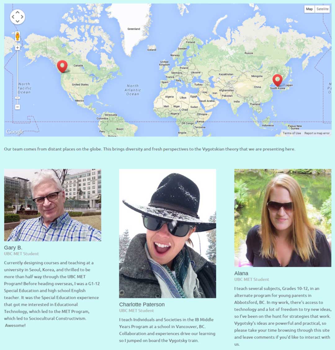 Now that I have completed most of the MET Program, including courses that deal extensively with constructivism and higher education, I can confirm that the solution I came up with is supported by Vygotskian theories about the Zone of Proximal Development (ZPD) and more knowledgeable others (MKOs) ; as well as Bates and Sangrà’s contention that, in higher education, it is essential that all stakeholders (faculty or group members) be included as equal partners in the planning and implementation of e-learning initiatives .